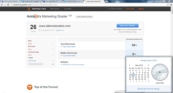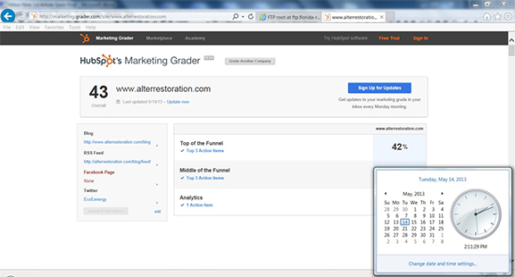 Online Behavioral Marketing launched the high quality website on May, 13th 2013. A brand new URL and website that quickly received a HubSpot Marketing Grade of 26 out of 100 in just 18 minutes. After 16 hours of launching the new website the Marketing Grade was at 43 and a perfect SEO score – please note that this did not include back-linking or business listing websites. Within a week, the website was receiving 297 Unique Visitors with a 1% Bounce Rate, along with 609 Page Impressions. Not to mention that within the first week, the website reached the #1 Google position for “Water Damage” in Lealman, FL.